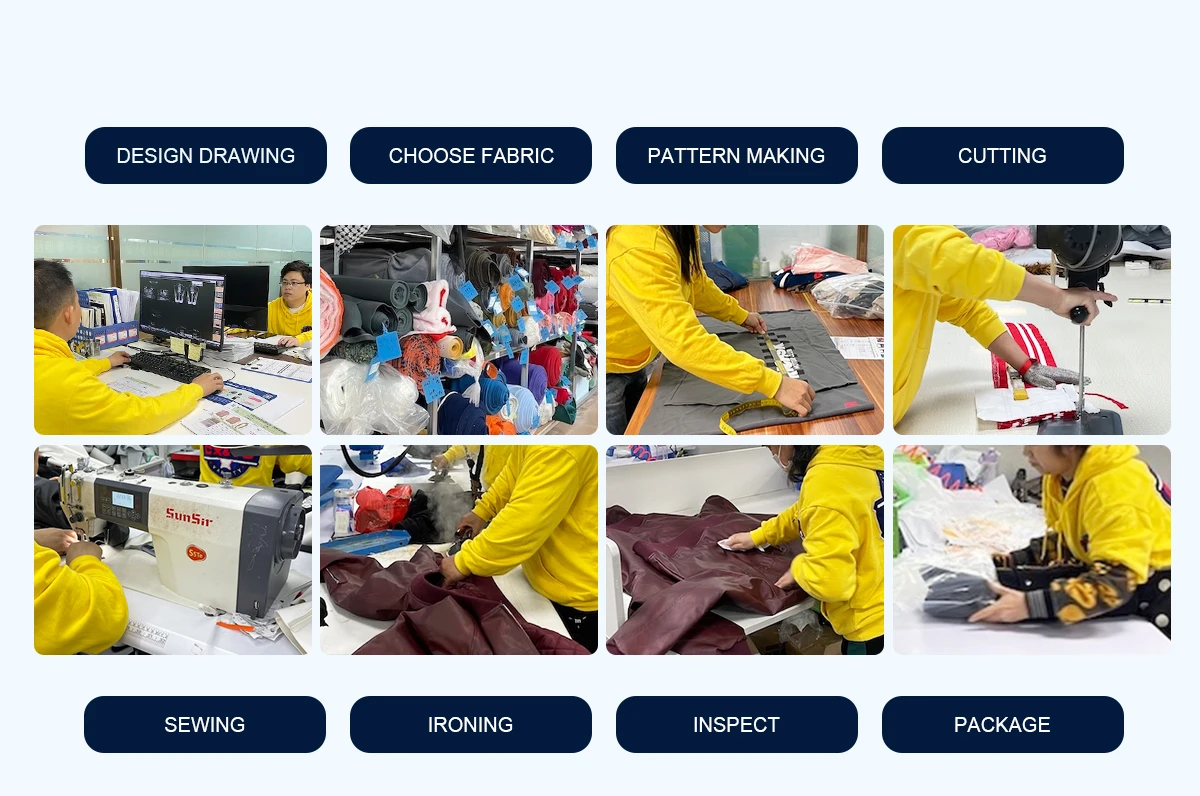 Yujia Garment Factory specializes in manufacturing various types of jackets. To meet customers' diverse needs, we've introduced advanced equipment such as embroidery machines and digital devices. Our product range is extensive, covering varsity jackets, leather jackets, sheepskin jackets, and PU leather jackets.